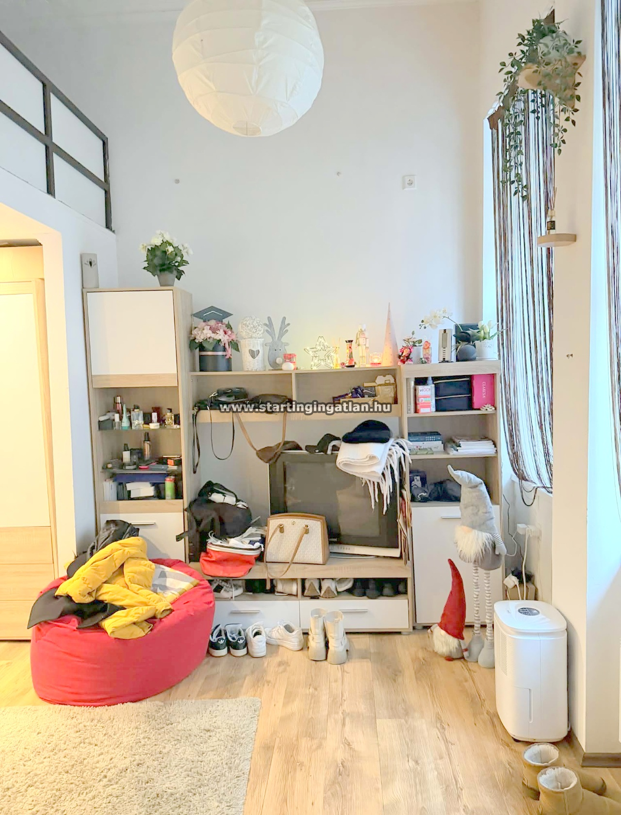 A konyhából érjük el a nappali–háló funkciót betöltő szobát, amely két ablakának és udvari fekvésének köszönhetően csendes, mégis meglepően világos, igazi nyugalomsziget a város szívében. A szobából felvezető lépcsőn található a klasszikus fekvőgaléria, ahol egy 180×200 cm-es ágy is kényelmesen elfér, a lépcső alatti beépített tárolók pedig okos megoldást nyújtanak a pakolásra. Az új műanyag nyílászárók kiváló hő- és hangszigetelést biztosítanak, redőnnyel felszerelve, a fűtésről elektromos panel gondoskodik.